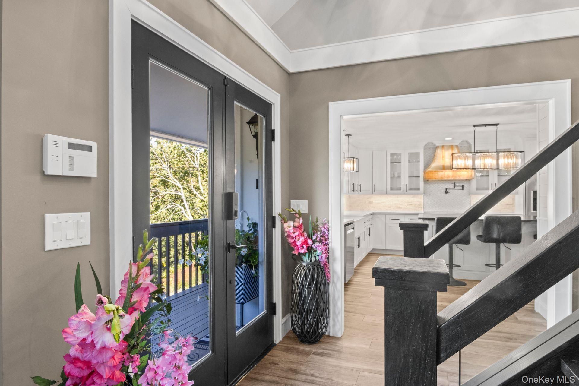 Beautiful updated Colonial blends beachside living with refined design is nestled within its elevated landscape offering both privacy and a sense of retreat just steps from the beach. The interior was completely renovated in 2022, boasting quality craftsmanship and sophisticated details throughout. The exterior facade was not fully completed during the renovation. The kitchen is the heart of the home, featuring a center island, custom copper range hood, shaker-style cabinetry, farmhouse sink, granite countertops, shiplap wall details, and a butler's pantry all open to the dining area. Flooded with natural light, the living room has vaulted ceilings and a wood-burning fireplace as its centerpiece. Behind barn doors is a family room outfitted with custom built-in cabinetry, media storage, a beverage center, and direct access to the side yard. A laundry room and powder room add convenience to the main level. Upstairs, the primary suite offers tranquility with a fireplace, dual closets, spa-inspired full bath, and an impressive, dream walk-in closet that can also function as a home office if needed. Two additional bedrooms and a gorgeous full bath complete the second floor. Additional features include radiant heat on the first floor, new windows, updated heating system, updated central air conditioning, updated plumbing, attached garage, and basement for storage. The tiered property invites the opportunity to create additional outdoor living. Located in the Harborfields School District and within H.B.C.A. (dues required), residents enjoy private beach access, mooring rights, summer camp, and year-round community events. Just a quick ride to Huntington Village, L.I.R.R. restaurants, shopping and more! Enjoy coastal living close to all!
