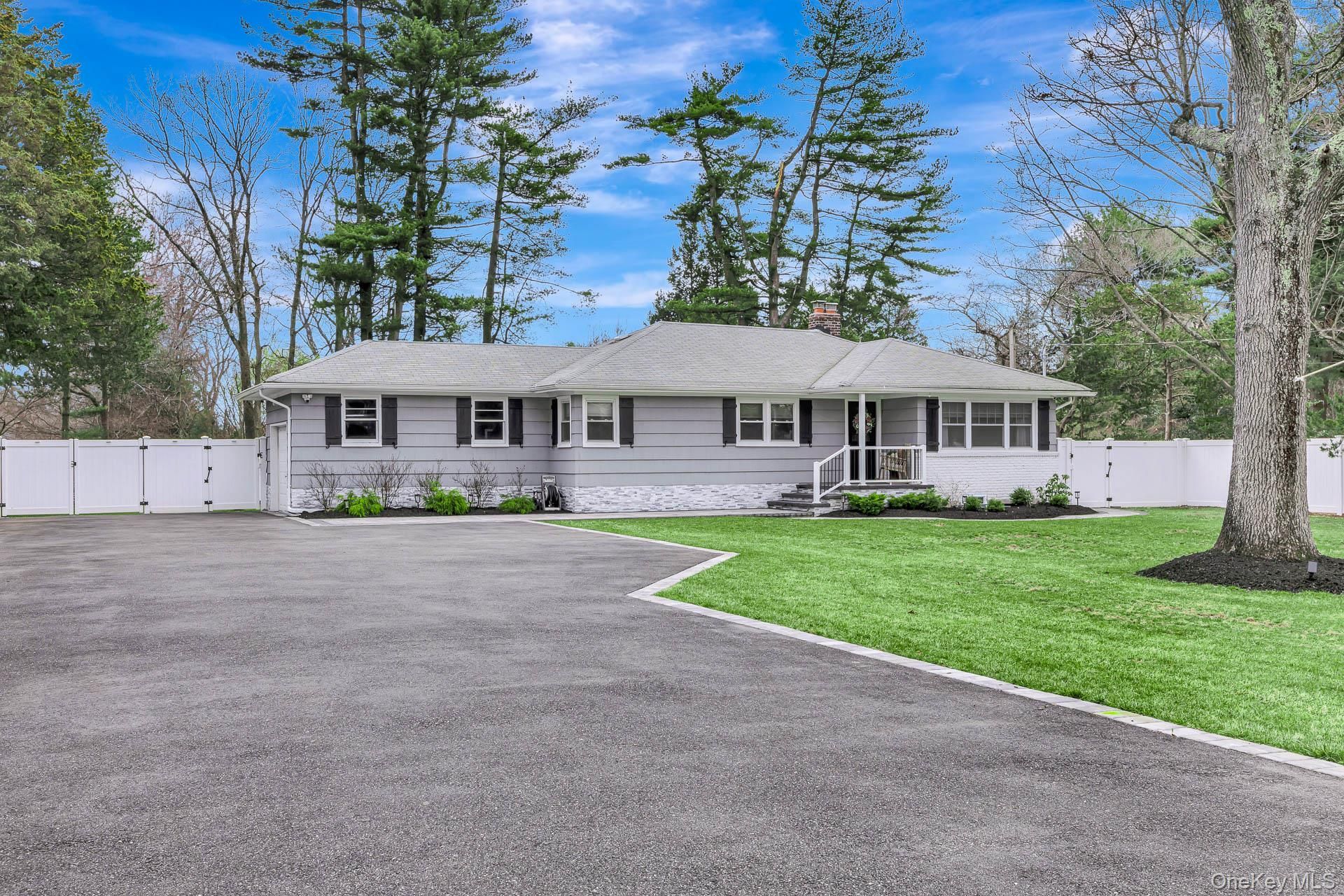 Welcome to 14 Ursular Court located in the heart of North Smithtown!!! This Charming updated Ranch features an entry foyer way, Kitchen w/ butcher block counter tops and SS Appliances, Dining area, cozy living room area w/ dual faced woodburning fireplace, Primary Bedroom, two additional bedrooms and full hall bathroom... Downstairs you will find a finished basement w/ kitchenette, an additional 2 bedrooms and 2nd bathroom, recreation area, laundry area and OSE!! Additional features include.... Oil Heat (2 Zone) w/ Gas available in the Street, recently updated 200 AMP electric, IGS System (7 zones - 3 years old), hardwood floors throughout, newly finished OVERSIZED driveway and stone pillars (2024), Pavers in front walkway (2024), spacious paver patio in back w/ Firepit (2024), New PVC fencing... All of this and much more set on just over half an acre, you do not want to miss this!!!