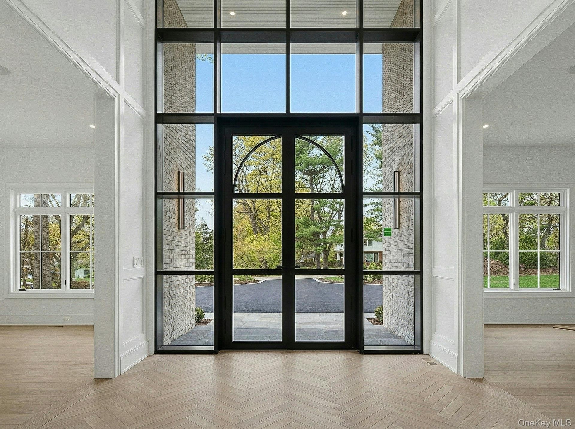 Introducing a newly constructed architectural statement set on pristine, private grounds in the heart of Sands Point. Encompassing approximately 6,875 square feet, this exceptional residence seamlessly blends striking modern design with the finest materials and craftsmanship, delivering a living experience of rare scale and sophistication.A dramatic glass entry door and stunning herringbone white oak floors set the tone, opening to a breathtaking double-height foyer where soaring ceilings and uninterrupted sightlines immediately captivate. At the center of the home, a sculptural marble fireplace anchors the space, framed by walls of glass that flood the interiors with natural light.The kitchen is a true showpiece-meticulously designed with custom cabinetry, enchanting stone, an expansive island, and a full suite of Sub-Zero and Wolf appliances. A stunning butler's pantry adorned with arched white oak millwork elegantly connects the kitchen to the formal dining room, creating a seamless flow for both intimate dinners and large-scale entertaining.Thoughtfully designed for modern living, the first floor also features a generous living room, a grand family room with an adjoining indoor-outdoor serving bar to the patio, and a flexible bedroom or library complete with a walk-in closet and full bath. A beautifully appointed mudroom offers a heated checkered marble floor, abundant storage, a powder room, and an additonal washer and dryer.A striking floating staircase-set against a dramatic wall of glass-leads to the second level, where a stunning hallway overlooks the main living spaces below. The primary suite is a private retreat of exceptional scale with a balcony overlooking the grounds, an expansive closet, complemented by an additional room ideal for a private office or dressing room. The primary bathroom features a marble soaking tub this is an incredible piece of art, dual showers including a steam shower, and a custom +double vanity.Three additional bedrooms, each with walk-in closets and ensuite bathrooms, along with a dedicated laundry room, complete the upper level.The finished lower level offers soaring 12-foot ceilings and endless possibilities, including space for a gym, home theater, golf simulator, and more, along with a full bath and generous storage. The mechanical room is envious and houses all of the finest equipment running the home, including the exceptional AV system.Outdoors, a sprawling patio with a gas fireplace overlooks a level, manicured lawn surrounded by privacy plantings