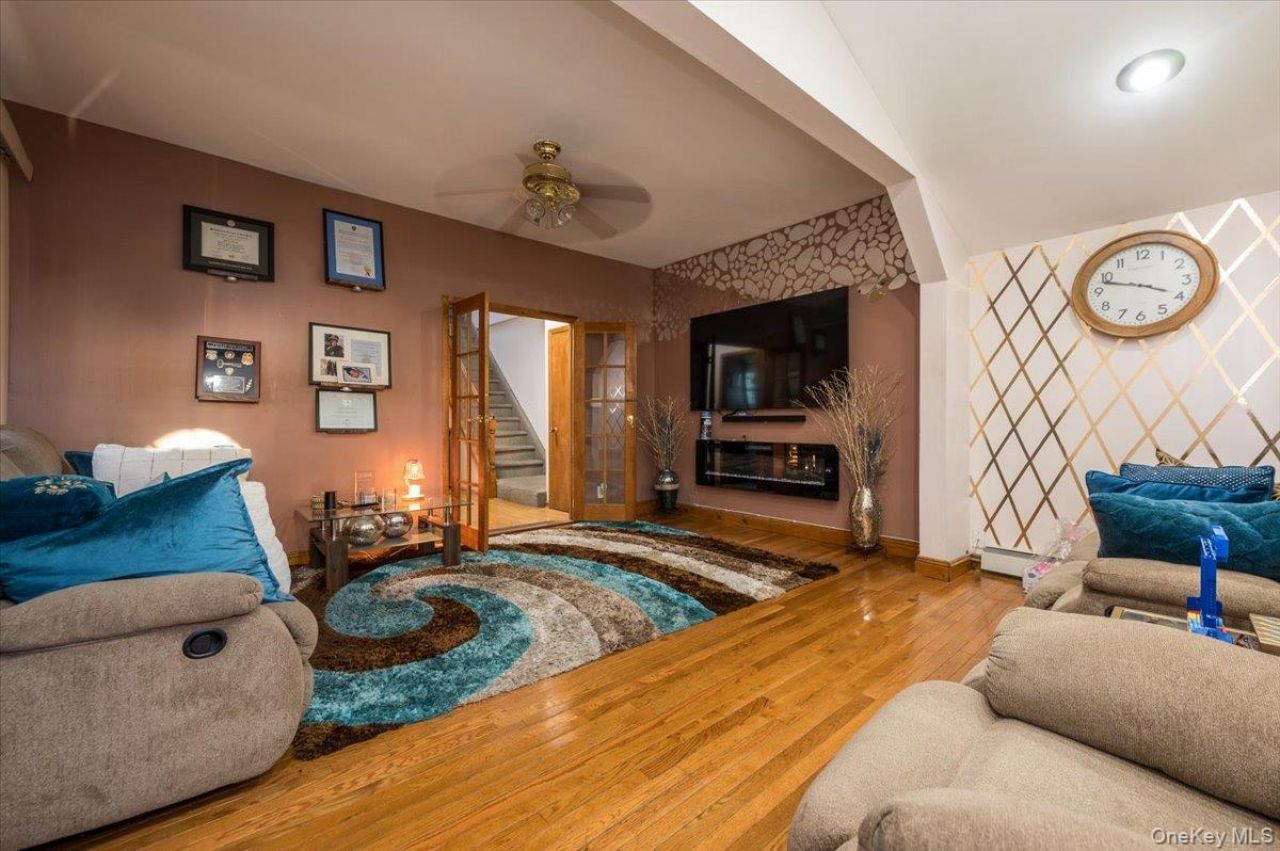Welcome to this well-maintained move in-ready 1-family Colonial home located in Elmont, NY. This property features 3 bedrooms, 2.5 bathrooms, including 2 recently updated full bathrooms, a full basement and 3 zone heating.The first floor offers a bright and open living room with vaulted ceilings, gleaming hardwood floors, a bow window, and recessed lighting. This space flows seamlessly into the dining area and kitchen, which features which features stainless steel appliances and ample cabinet and counter space. The level also includes an updated full bathroom with floor-to-ceiling tile, a glass-enclosed shower, and a modern vanity. Toward the rear of the home, you'll find an enclosed mudroom/flex space with hardwood flooring and direct access to the backyard deck through double French doors.The second floor includes a large primary bedroom featuring a bay window that brings in excellent natural light, along with a double closet. This level also offers two additional bedrooms and a renovated full bathroom with tiled walls, a glass-enclosed tub/shower, and an extended vanity providing generous counter space and storageThis home also has a finished basement, providing additional recreational space . The exterior features a private driveway, rear deck, and a fully fenced backyard suitable for outdoor enjoyment.Conveniently located within walking distance to shopping, transportation, and local amenities.