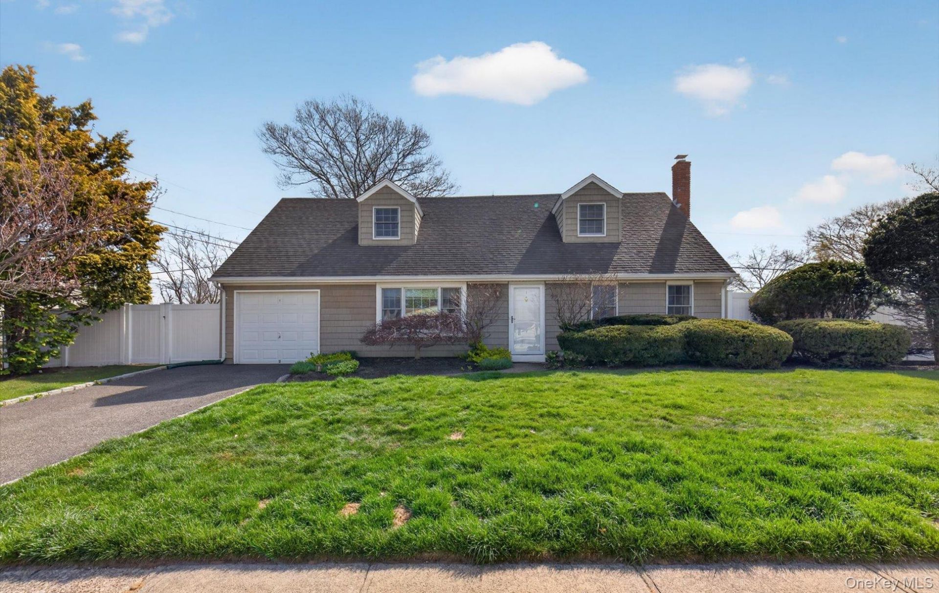 Welcome to 77 Miller Avenue, an excellently maintained Cape Cod-style home situated on a spacious corner lot. This property features a professionally landscaped private garden with fruit trees and a variety of perennials including hydrangeas, lilacs, and roses. The interior offers over 2,000 square feet of living space, highlighted by new Luxury Vinyl Plank (LVP) flooring and three mini-split units for efficient climate control. The main level includes a formal dining room, a living room, and an Eat-In Kitchen with a pantry, recessed lighting, new refridgerator, cooktop and oven.. A cozy den with a wood-burning stove provides additional living space. Also located on the first floor is a versatile third bedroom, which is currently utilized as a laundryroom. Upstairs, the huge primary suite features a walk-in closet and full bathroom, accompanied by a second spacious bedroom.Additional upgrades include a 150-amp electrical service, certainteed vinyl siding, 5 zone inground sprinklers and new fencing. This move-in-ready home is located in the Comsewogue School District with easy access tp parkways, shopping and recreation.