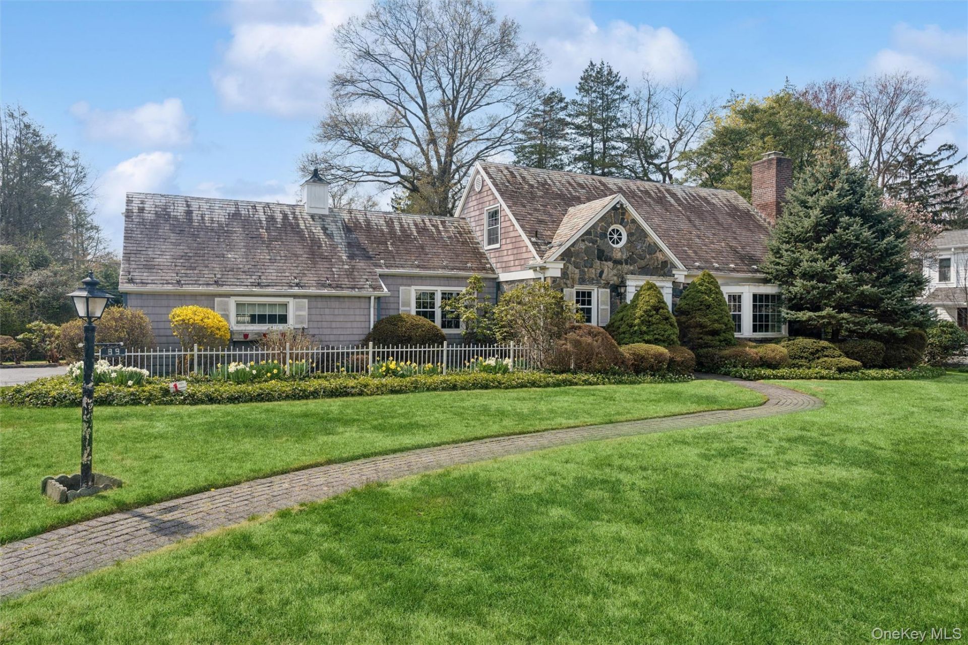 Bright and sunny expanded Walter Uhl Cape ideally situated in the heart of the Village of Flower Hill on a beautiful level .31-acre property framed by mature privacy hedges and patio. The gracious first floor is anchored by an expansive living room, formal dining room, den/office, eat-in kitchen, family room with flexibility for third bedroom use, and powder room. Upstairs, the spacious primary suite includes a private bath and is complemented by a second bedroom, en-suite bath, and substantial undeveloped attic/eaves space with future potential. Full basement. Exceptional opportunity to update, expand, or reimagine on a beautiful flat parcel in a prime location.
